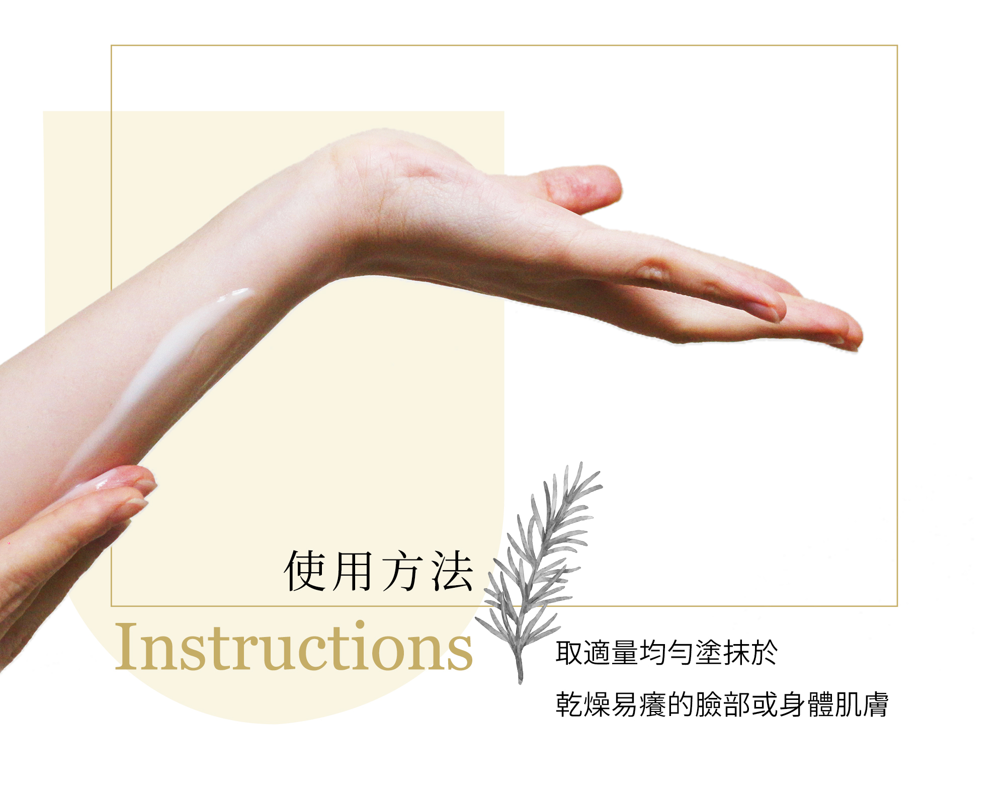 • 積雪草萃取:快速緩解反覆發生的乾癢問題,於表皮形成保護膜,提升肌膚對環境傷害的防禦能力,修護、安撫敏弱肌膚。