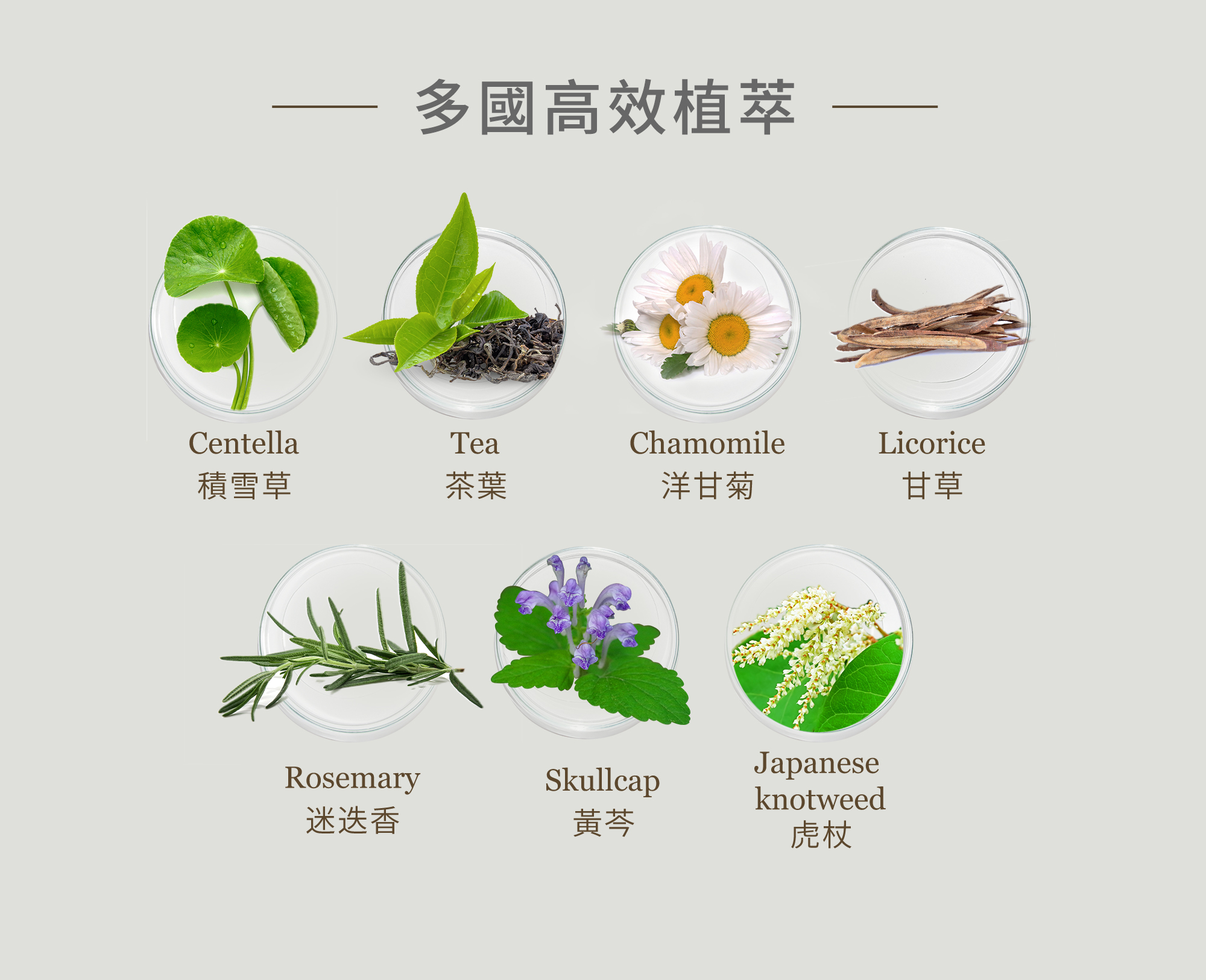 • 積雪草萃取:植萃舒緩成分,於表皮形成保護膜,提升肌膚對環境傷害的防禦能力,修護、安撫肌膚